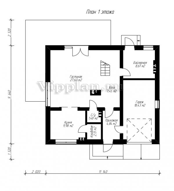 | Размеры дома: | 11.14м×9.64м |